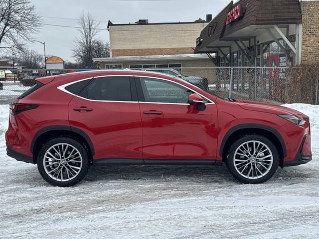 Lexus Glenview is proud to offer this beautiful-looking 2025 Lexus NX 350 Luxury in Red Beautifully equipped with 10 Speakers, 4-Wheel Disc Brakes, ABS brakes, Air Conditioning, Alloy wheels, AM/FM radio: SiriusXM, Auto High-beam Headlights, Auto tilt-away steering wheel, Auto-dimming door mirrors, Auto-dimming Rear-View mirror, Automatic temperature control, Brake assist, Bumpers: body-color, Delay-off headlights, Driver door bin, Driver vanity mirror, Dual front impact airbags, Dual front side impact airbags, Electronic Stability Control, Emergency communication system: Safety Connect (up to 10-year trial subscription included), Exterior Parking Camera Rear, Four wheel independent suspension, Front anti-roll bar, Front Bucket Seats, Front Center Armrest, Front dual zone A/C, Front fog lights, Front reading lights, Fully automatic headlights, Garage door transmitter: HomeLink, Genuine wood door panel insert, Heads-Up Display, Heated & Ventilated Front Bucket Seats, Heated door mirrors, Heated front seats, Illuminated entry, Knee airbag, Leather Seat Trim, Leather Shift Knob, Leather steering wheel, Low tire pressure warning, Memory seat, Navigation system: Drive Connect Cloud Navigation (3-year trial subscription included), Occupant sensing airbag, Outside temperature display, Overhead airbag, Overhead console, Panic alarm, Passenger door bin, Passenger vanity mirror, Power door mirrors, Power driver seat, Power Liftgate, Power moonroof, Power passenger seat, Power steering, Power windows, Radio data system, Radio: 10-Speaker Lexus Premium Sound, Rain sensing wipers, Rear anti-roll bar, Rear reading lights, Rear seat center armrest, Rear window defroster, Rear window wiper, Remote keyless entry, Security system, Speed control, Speed-sensing steering, Speed-Sensitive Wipers, Split folding rear seat, Spoiler, Steering wheel memory, Steering wheel mounted audio controls, Tachometer, Telescoping steering wheel, Tilt steering wheel, Traction control, Trip computer, Turn signal indicator mirrors, Variably intermittent wipers, Ventilated front seats, Wheels: 18" Alloy w/Dark Gray Met & Machined Finish, and Wireless Apple CarPlay/Wireless Android Auto!
