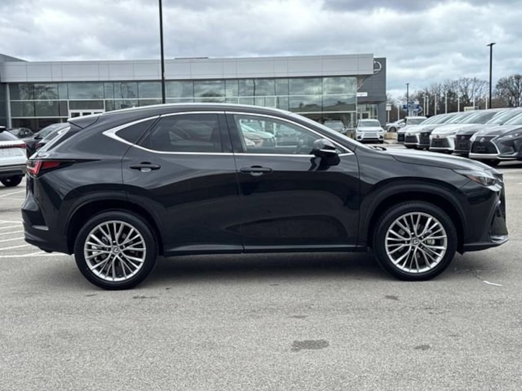 Certified by the best program in the industry seven years running, adding an UNLIMITED MILEAGE WARRANTY and four free services! Need financing? Check our seasonal specials! Come take a test drive today! Lexus Glenview is delighted to offer this wonderful 2025 Lexus NX 350h Premium in Caviar Beautifully equipped with 10 Speakers, 4-Wheel Disc Brakes, ABS brakes, Air Conditioning, Alloy wheels, AM/FM radio: SiriusXM, Auto High-beam Headlights, Auto tilt-away steering wheel, Auto-dimming door mirrors, Auto-dimming Rear-View mirror, Automatic temperature control, Brake assist, Bumpers: body-color, Delay-off headlights, Driver door bin, Driver vanity mirror, Dual front impact airbags, Dual front side impact airbags, Electronic Stability Control, Emergency communication system: Safety Connect (up to 10-year trial subscription included), Exterior Parking Camera Rear, Four wheel independent suspension, Front anti-roll bar, Front Bucket Seats, Front Center Armrest, Front dual zone A/C, Front fog lights, Front reading lights, Fully automatic headlights, Garage door transmitter: HomeLink, Heated & Ventilated Front Bucket Seats, Heated door mirrors, Heated front seats, Illuminated entry, Knee airbag, Leather Shift Knob, Leather steering wheel, Low tire pressure warning, Memory seat, Navigation system: Drive Connect Cloud Navigation (subscription required), NuLuxe Seat Trim, Occupant sensing airbag, Outside temperature display, Overhead airbag, Overhead console, Panic alarm, Passenger door bin, Passenger vanity mirror, Power door mirrors, Power driver seat, Power Liftgate, Power moonroof, Power passenger seat, Power steering, Power windows, Radio data system, Radio: 10-Speaker Lexus Premium Sound, Rain sensing wipers, Rear anti-roll bar, Rear reading lights, Rear seat center armrest, Rear window defroster, Rear window wiper, Remote keyless entry, Security system, Speed control, Speed-sensing steering, Speed-Sensitive Wipers, Split folding rear seat, Spoiler, Steering wheel memory, Steering wheel mounted audio controls, Tachometer, Telescoping steering wheel, Tilt steering wheel, Traction control, Trip computer, Turn signal indicator mirrors, Variably intermittent wipers, Ventilated front seats, Wheels: 18" Dark Gray Met. & Machined Finish Alloy, and Wireless Apple CarPlay/Wireless Android Auto!