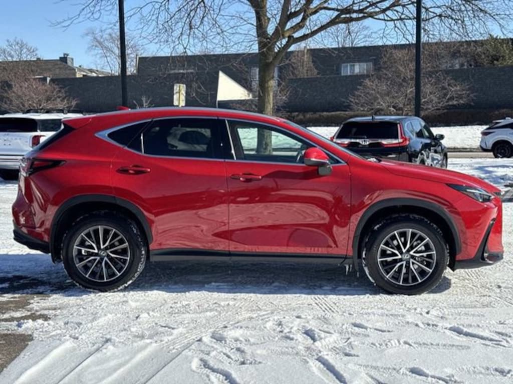 Lexus Glenview is excited to offer this good-looking 2025 Lexus NX 350 Base in Red Line Beautifully equipped with 10 Speakers, 4-Wheel Disc Brakes, ABS brakes, Air Conditioning, Alloy wheels, AM/FM radio: SiriusXM, Auto High-beam Headlights, Auto-dimming door mirrors, Auto-dimming Rear-View mirror, Automatic temperature control, Brake assist, Bumpers: body-color, Delay-off headlights, Driver door bin, Driver vanity mirror, Dual front impact airbags, Dual front side impact airbags, Electronic Stability Control, Emergency communication system: Safety Connect (up to 10-year trial subscription included), Exterior Parking Camera Rear, Four wheel independent suspension, Front anti-roll bar, Front Bucket Seats, Front Center Armrest, Front dual zone A/C, Front fog lights, Front reading lights, Fully automatic headlights, Garage door transmitter: HomeLink, Heated door mirrors, Heated Front Bucket Seats, Heated front seats, Illuminated entry, Knee airbag, Leather Shift Knob, Leather steering wheel, Low tire pressure warning, Navigation system: Drive Connect Cloud Navigation (subscription required), NuLuxe Seat Trim, Occupant sensing airbag, Outside temperature display, Overhead airbag, Overhead console, Panic alarm, Passenger door bin, Passenger vanity mirror, Power door mirrors, Power driver seat, Power Liftgate, Power passenger seat, Power steering, Power windows, Radio data system, Radio: 10-Speaker Lexus Premium Sound, Rain sensing wipers, Rear anti-roll bar, Rear reading lights, Rear seat center armrest, Rear window defroster, Rear window wiper, Remote keyless entry, Security system, Speed control, Speed-sensing steering, Speed-Sensitive Wipers, Split folding rear seat, Spoiler, Steering wheel mounted audio controls, Tachometer, Telescoping steering wheel, Tilt steering wheel, Traction control, Trip computer, Turn signal indicator mirrors, Variably intermittent wipers, Wheels: 18" Alloy w/Dark Gray Met & Machined Finish, and Wireless Apple CarPlay/Wireless Android Auto!